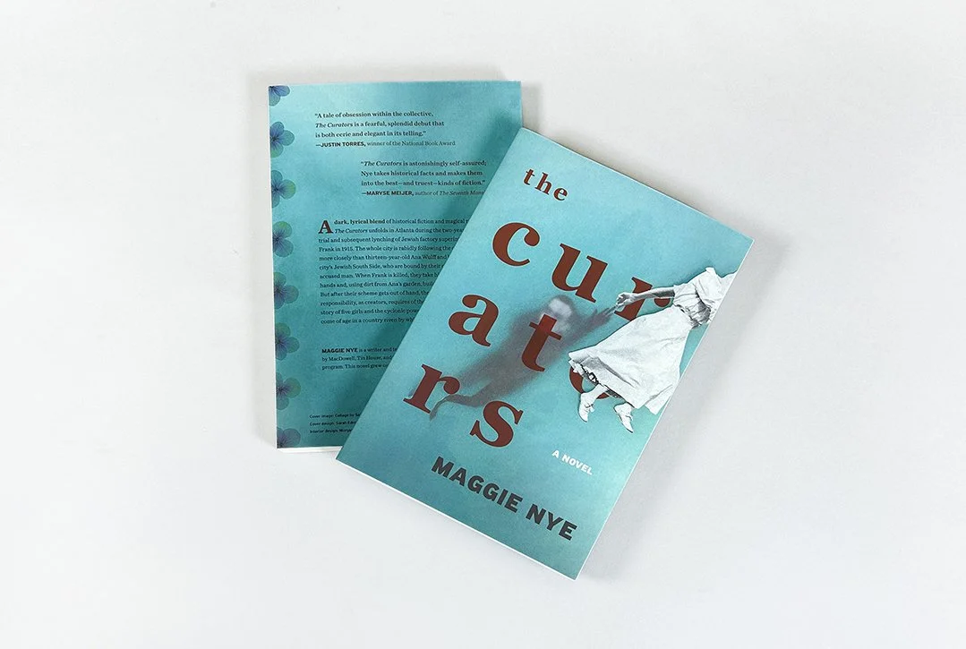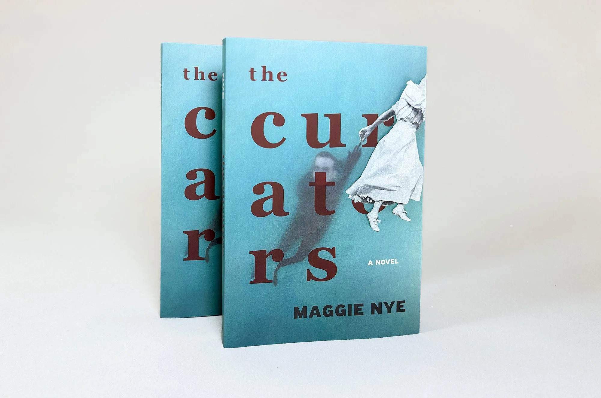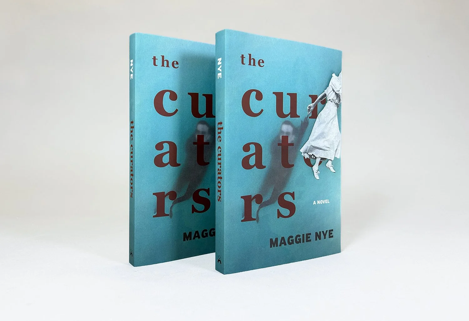 The book cover design of Maggie Nye’s debut novel, The Curators (Northwestern University Press), uses a collage aesthetic to invoke historical trauma, archival materiality, and speculative storytelling.