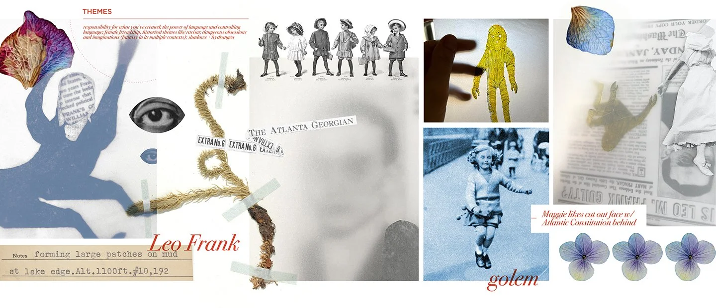 This cover design juxtaposes fragmented letterforms, historical photography from "The Atlanta Constitution," and cut-out figures to evoke the spectral presence of Leo Frank’s lynching. Tracked out and layered typography suggest contested histories, while the interplay of obscured faces and childhood imagery reflects both innocence and its corruption through dangerous obsessions. Into this archival reconstruction, language is positioned as both a site of power and instability in speculative historical fiction.