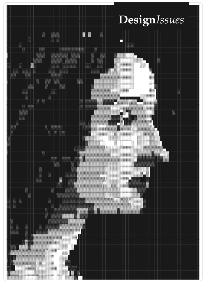 EISSN 1531-4790This Design Issues cover design uses the 8-bit extended ASCII language (acronym of American Standard Code for Information Interchange), a subset of Unicode, in order to imply a complex history between encoded images, womxn, art, and design. The monospace typeface used throughout this work is Prima Sans Mono, one of the few monospace typefaces designed by a woman. The typeface’s creator, Sue Zafarana, was part of the 1984 design team that developed the first digital font library.