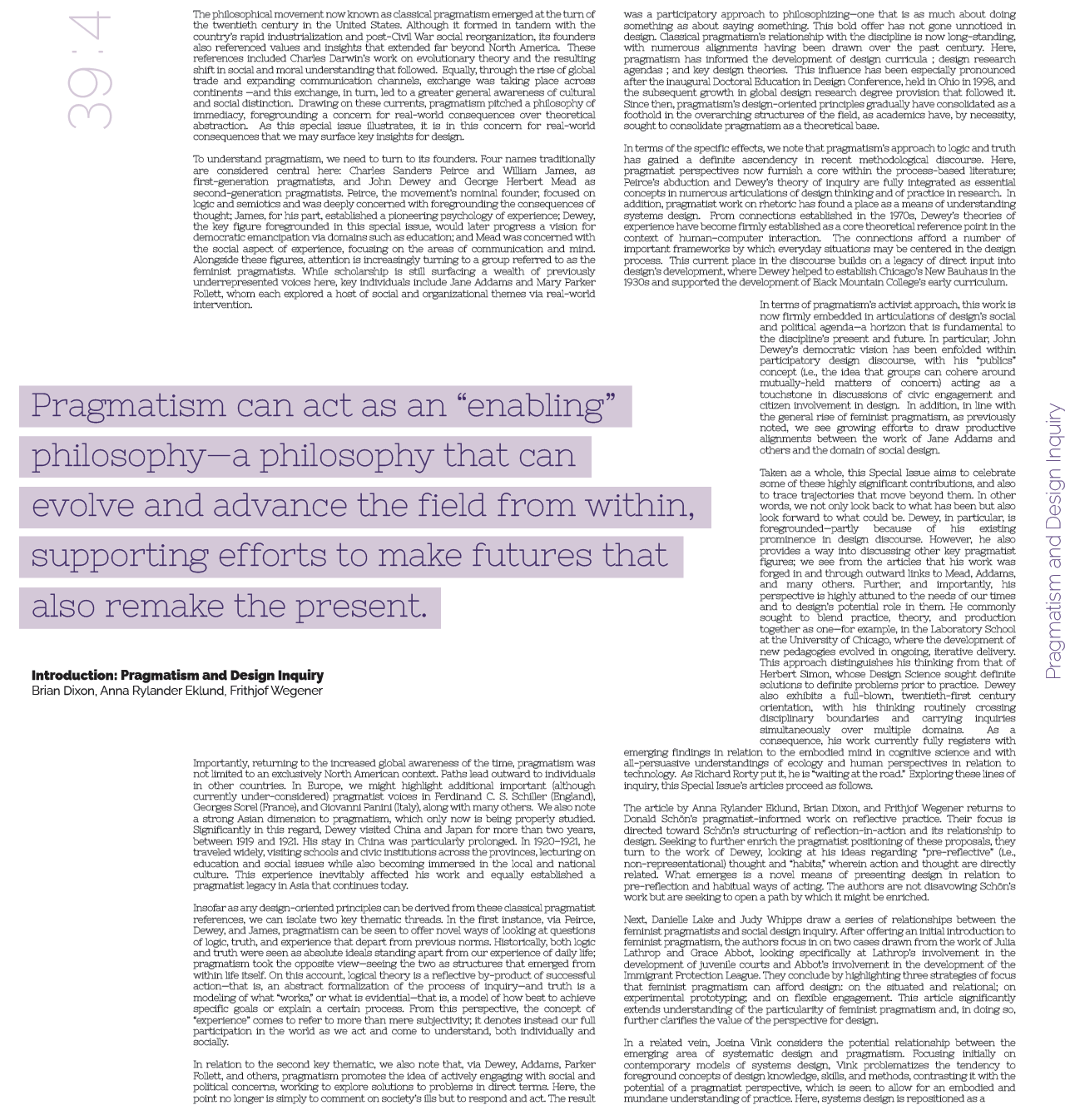 Design Issues out of MIT Press, the oldest American academic journal examining design history, theory, and criticism, requested a special issue cover design foregrounding philosopher John Dewey’s impact on design. In the 20th century, Dewey invigorated the idea of pragmatism in the U.S., centering the importance of immediacy and experimental inquiry over theoretical abstraction. Pragmatism surfaces key insights for the practice of design, offering a theoretical lens that helps us understand the ontological way we fit into the world around us. This special issue cover design for "Pragmatism and Design Inquiry,” needed to engage with this dense theory while simultaneously enticing and exciting potential readers.