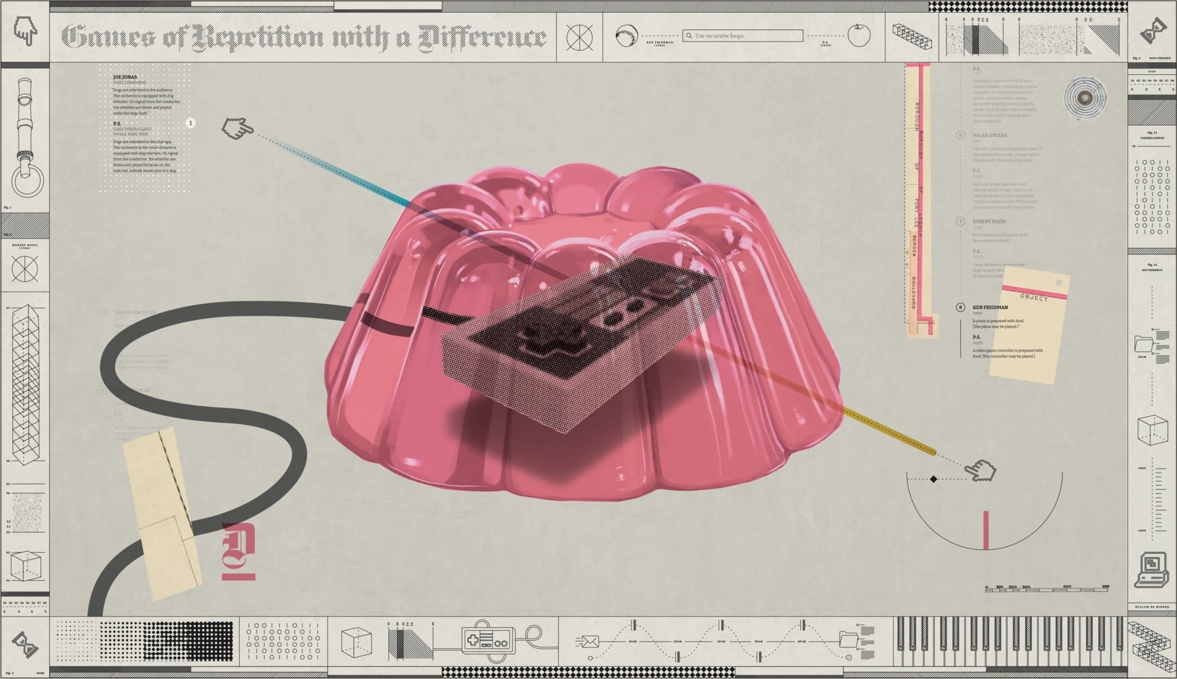Otherworldly Games riffs on the Fluxus experimental art movement. In 1969, Alison Knowles described the Fluxus “event score” as a “one- or two-line recipe for action.” Though rarely described as games, these scores feel like invitations to social play. Ludic event scores have fallen out of fashion since their heyday in the 1960s and 1970s. What, then, would such scores look like 50 years later in a culture where games are no longer a peripheral art form but culturally dominant? Instead of simply serving as precursors to contemporary video games, might speculative Fluxus event scores have something new to teach us about game-based worldbuilding?