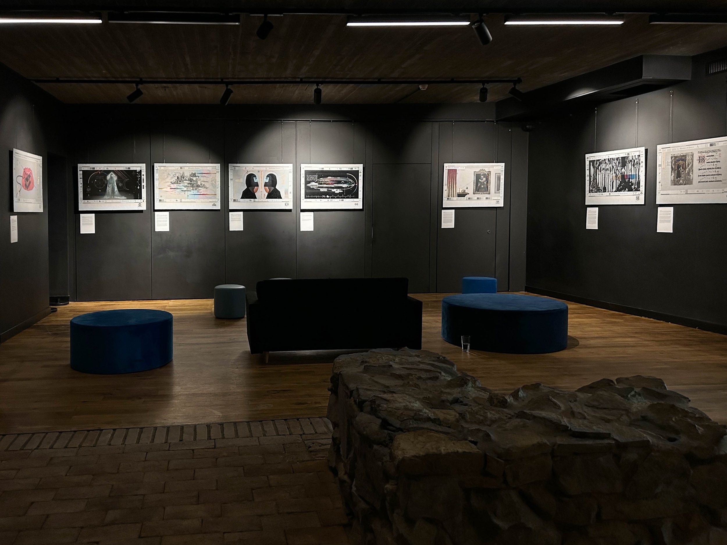 8 large scale prints, 8 play prompts, and the text-based multilinear video game from Otherworldly Games exhibited at the Rzeszowskie Piwnice Museum in Poland in 2024. We also exhibited the video game at the Glasshouse Gallery at the Center for Digital Narrative in Norway.