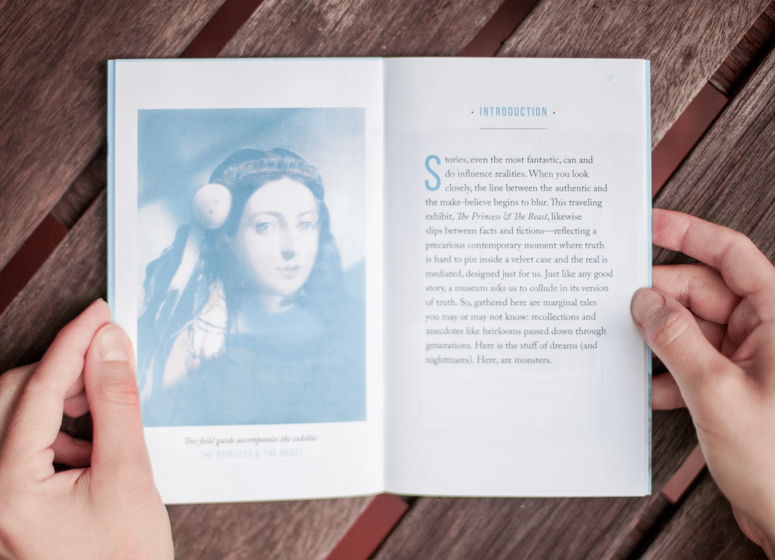 Print collateral for the exhibition, The Princess & The Beast, the field guide was design as a take-away and includes interviews within the community, maps, history, and local folklore.